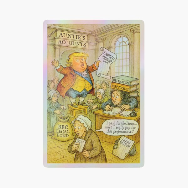 Sketching the News — #1: Trump, the BBC, and the Licence Fee Shake-Down Holographic Sticker