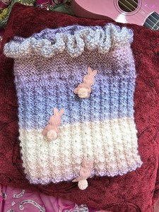 Bunny Blanket Handmade Artisan Christening Birth Gift Pastel Unisex 14 X 18 Inch
