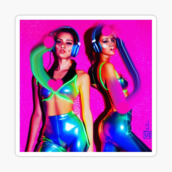 Disco Babes in Neon Lycra by Servalan Glossy Sticker