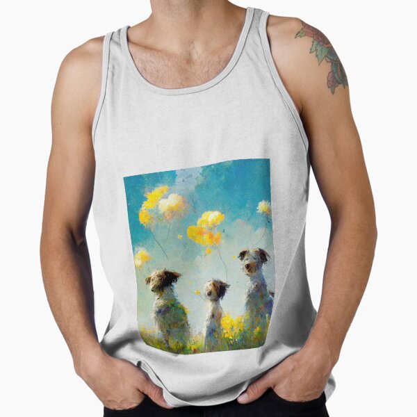 Who Let the Dogs Out? by Tale Teller Servalan Red Yellow Flowers Fun Tank Top
