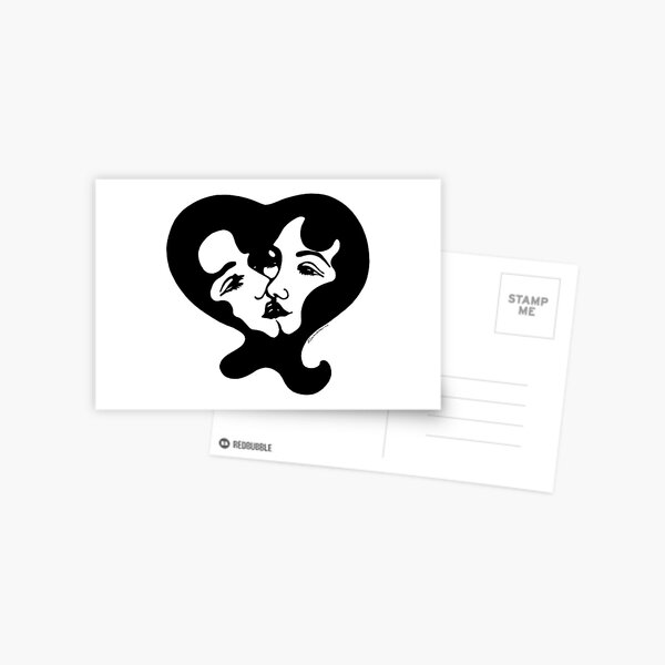 Kiss Kiss Lady Love Monochrome Logo Heart Retro 1960s Postcard