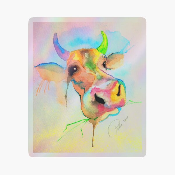 Moo Cow Happy Bull Watercolour Cute Bright Kids’ Toddle Poddle Illustration Holographic Sticker