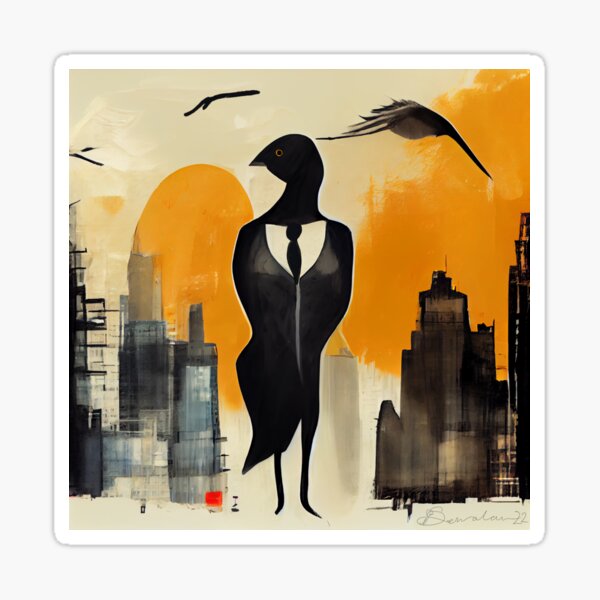 Off to Work With the Larks Orange and Black by iServalan for Tale Teller Club Sticker
