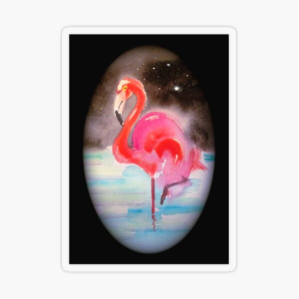 Pink Flamingo at Midnight with Twinkly Stars by Goddamn Media Transparent Sticker