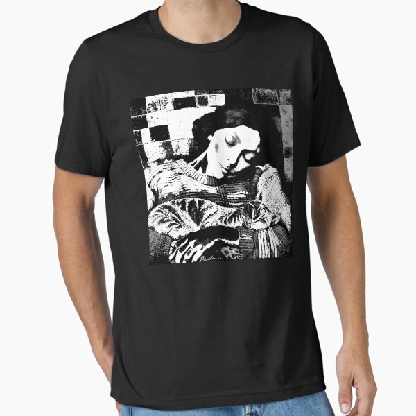 Me and Cat Sleeping in Winter Monochrome Art by iServalan for Tale Teller Club Essential T-Shirt