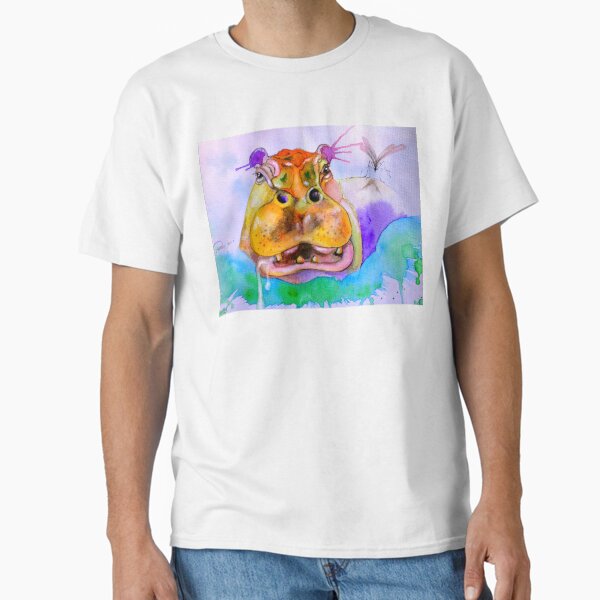 Happy Hippo with Crane Fly Watercolour by Tale Teller Club Books Classic T-Shirt