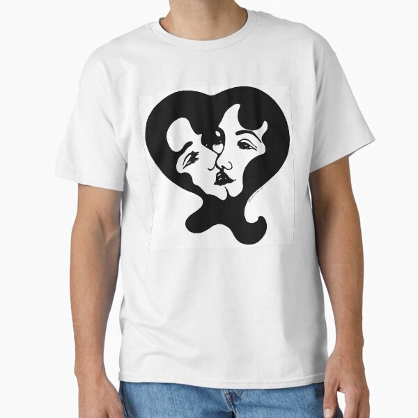 Kiss Kiss Lady Love Monochrome Logo Heart Retro 1960s Classic T-Shirt